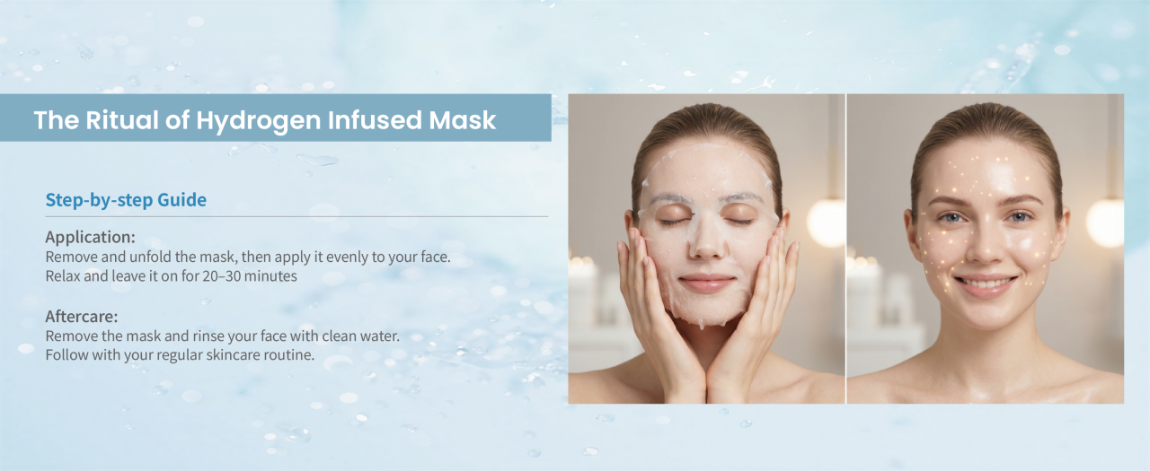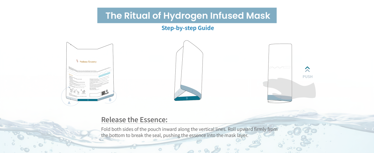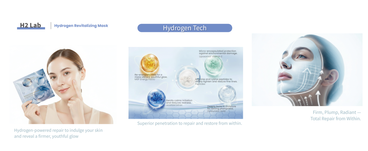 Utilizing patented solid hydrogen encapsulation technology, hydrogen is stably preserved within the mask and released upon essence infusion to enhance absorptio