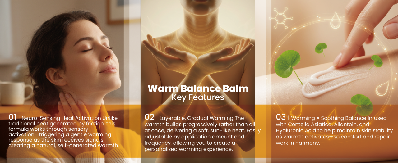 Created for those who seek warmth and a gently comforting feel. Upon application, a soft warmth gradually unfolds on the skin, awakening its senses and deliveri